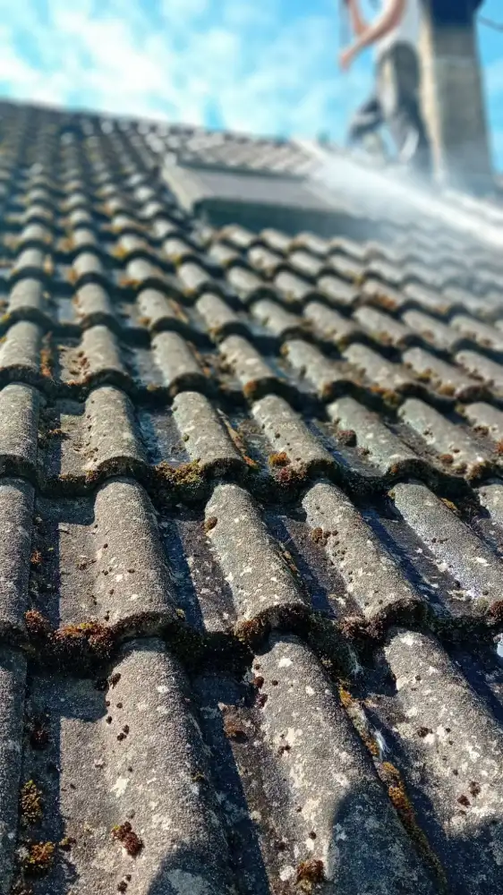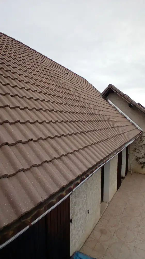Toitures : nettoyage, démoussage et décontamination. Nous appliquons un traitement par pulvérisation avec des produits professionnels respectueux de l’environnement, permettant un nettoyage efficace tout en préservant la structure des tuiles et ardoises.